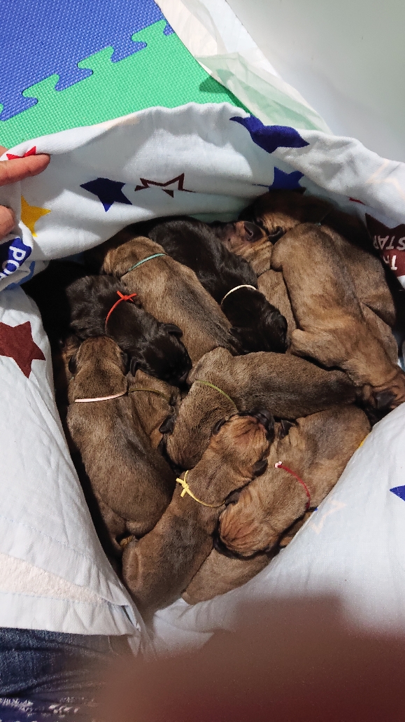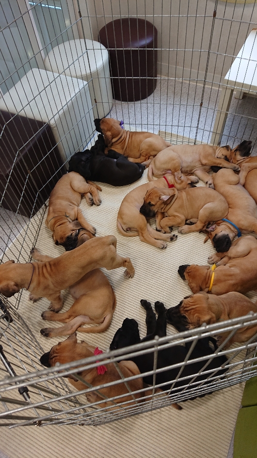 先日グレートデンに実施したAIにより子犬が14頭生まれ、現在全頭すくすく育っています。