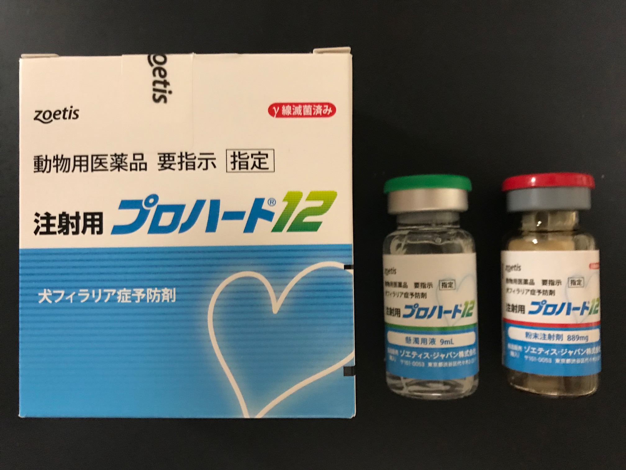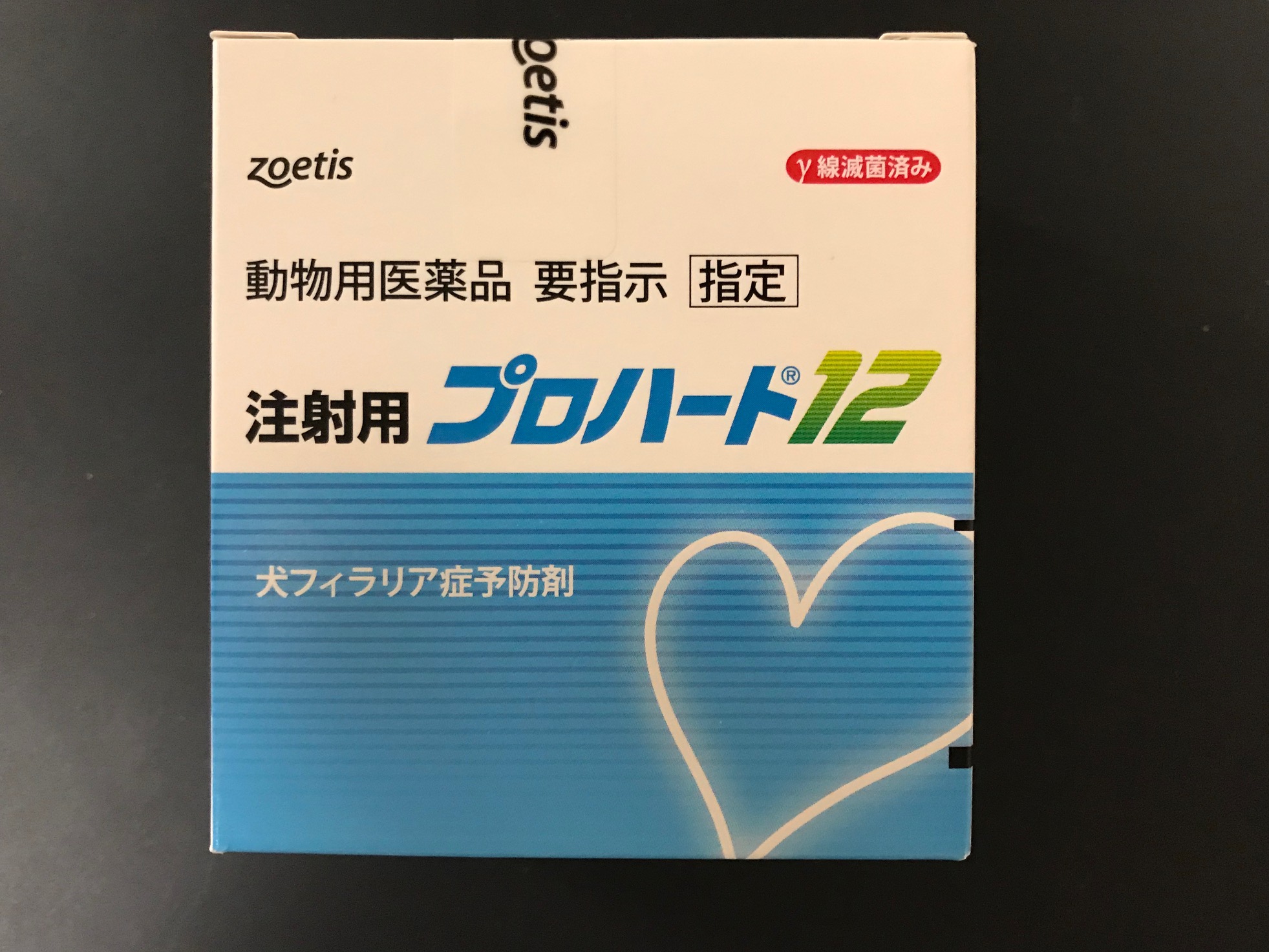 フィラリア症予防のための注射薬で、12カ月間有効つまり年1回注射をすれば完全な予防ができるプロハート12を使います。